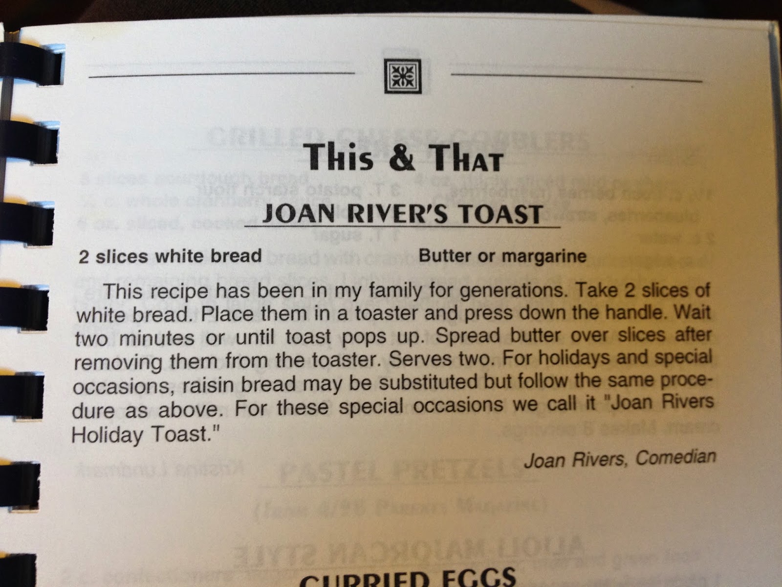 Here's one of my favorites, from Joan Rivers, the way it appeared in print. Whenever I make it in the future, I'll think of her fondly. May she rest in peace.